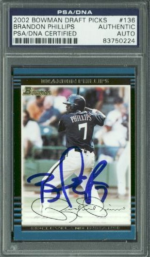 Indians Brandon Phillips Signed Card 2002 Bowman Draft Picks Rc #136 PSA Slabbed