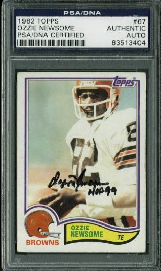 Browns Ozzie Newsome 'HOF 99' Authentic Signed Card 1982 Topps #67 PSA Slabbed