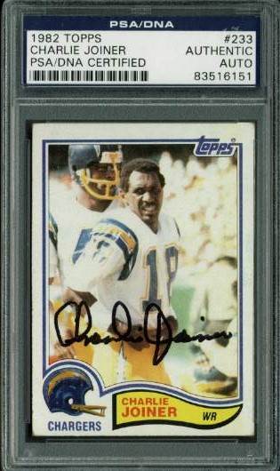 Chargers Charlie Joiner Authentic Signed Card 1982 Topps #233 PSA/DNA Slabbed