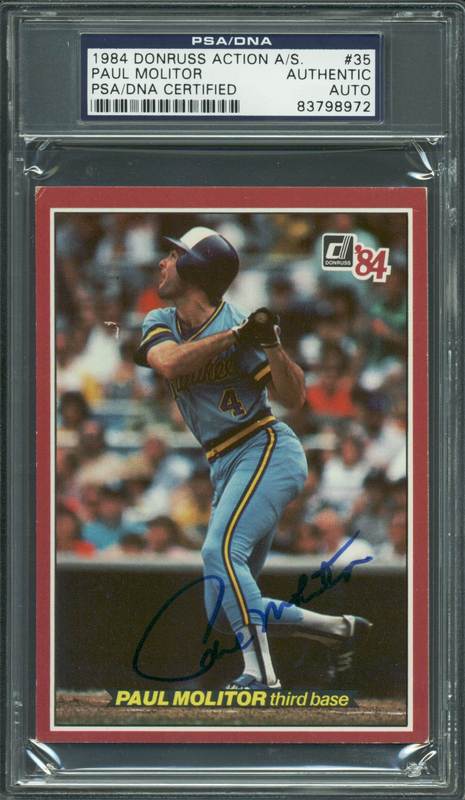 Brewers Paul Molitor Authentic Signed Card 1984 Donruss Action #35 PSA Slabbed