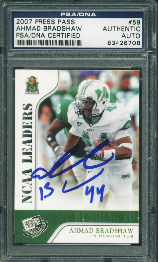 Ahmad Bradshaw Authentic Signed Card 2007 Press Pass Rookie #59 PSA/DNA Slabbed