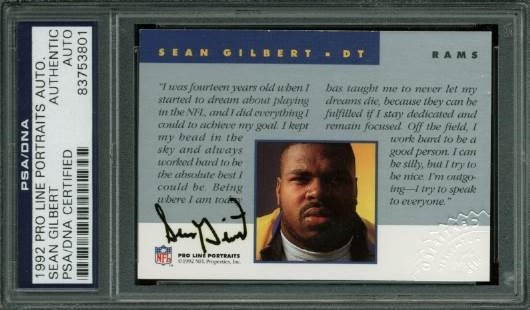 Rams Sean Gilbert Signed Card 1992 Pro Line Portraits Auto. PSA/DNA Slabbed