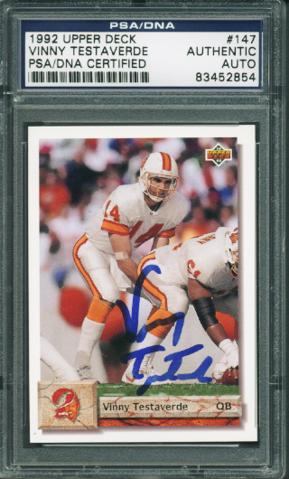 Buccaneers Vinny Testaverde Authentic Signed Card 1992 Ud #147 PSA/DNA Slabbed