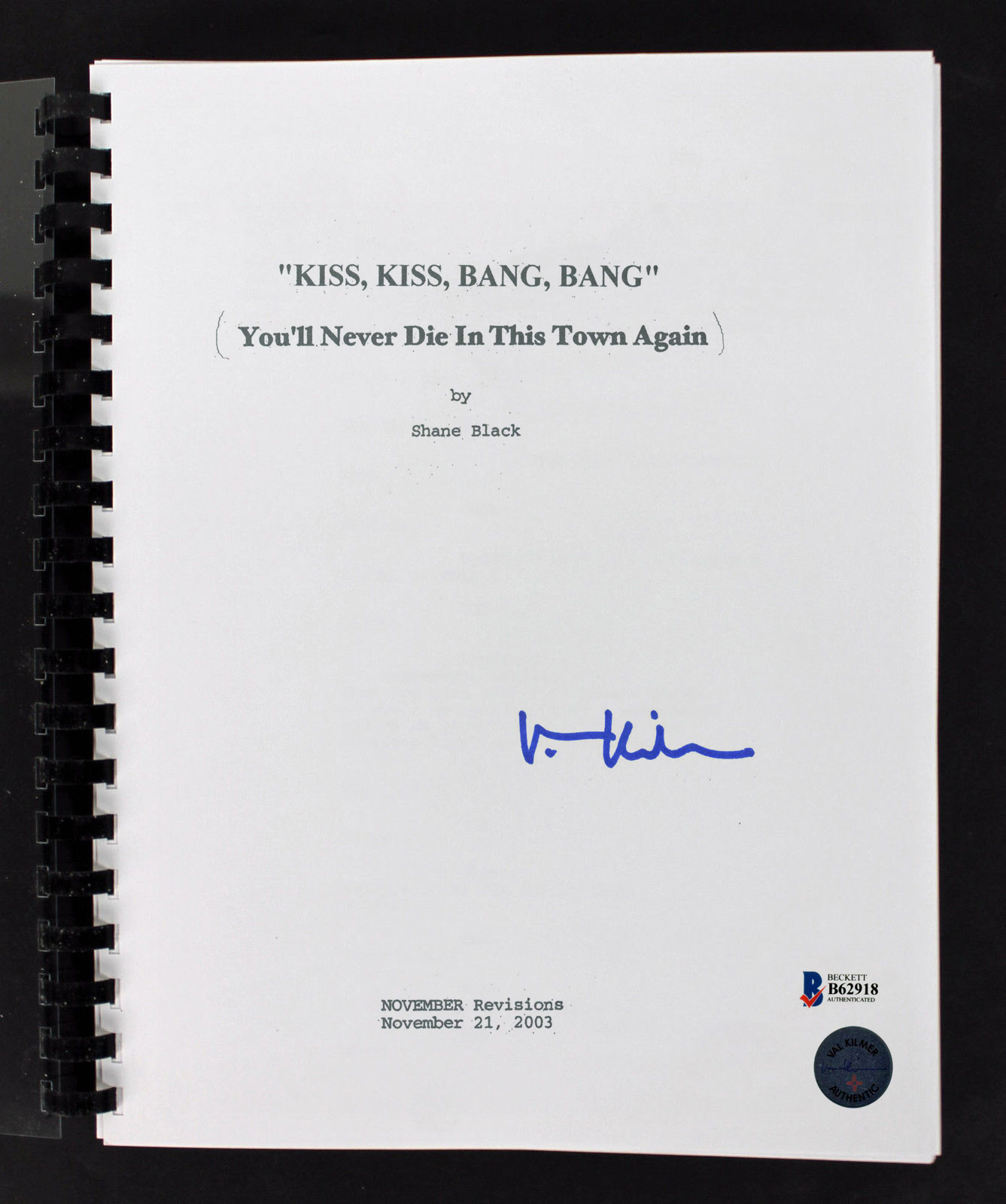 Val Kilmer Authentic Signed Kiss Kiss Bang Bang Movie Script BAS #B62918