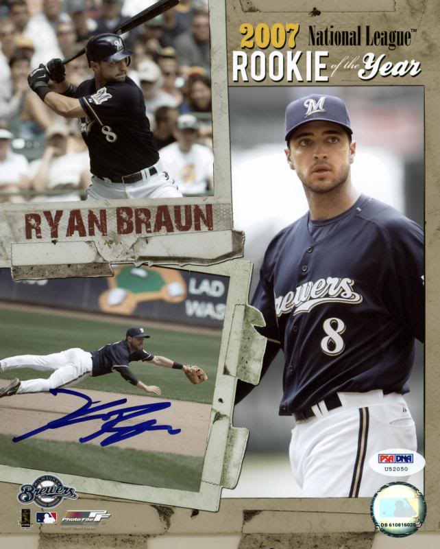 Brewers Ryan Braun Signed Authentic 8X10 Photo Autographed PSA/DNA #U52050