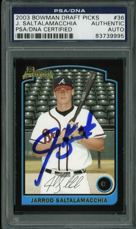 Jarrod Saltalamacchia Signed Card 2003 Bowman Draft Picks Rc #36 PSA/DNA Slabbed