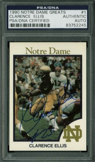 Clarence Ellis Authentic Signed Card 1990 Notre Dame Greats #1 PSA/DNA Slabbed