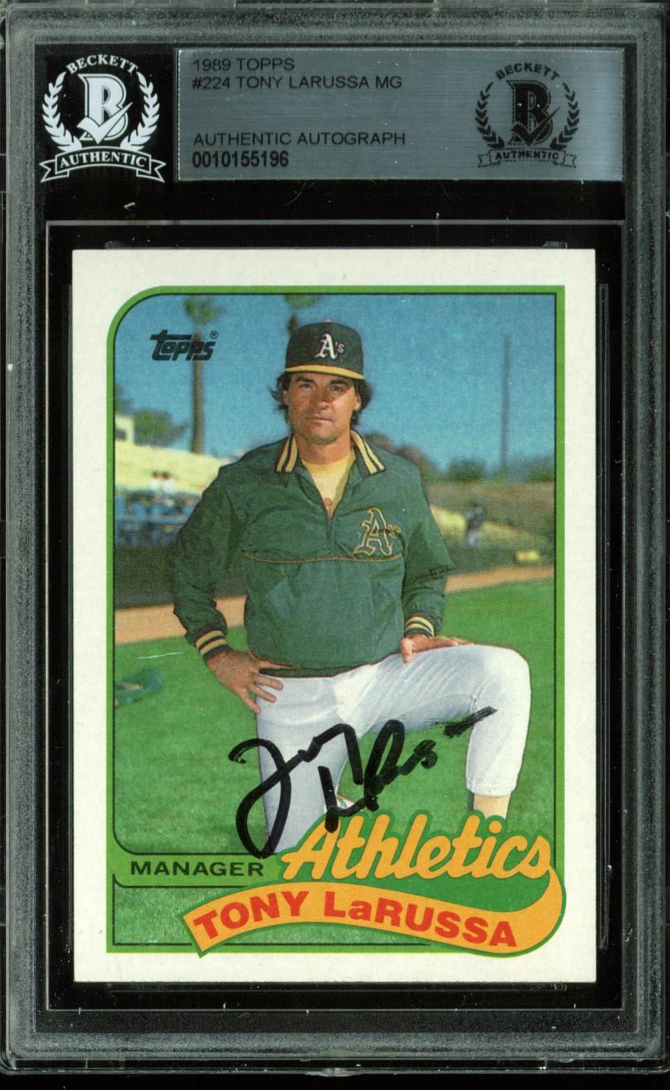 Athletics Tony LaRussa Authentic Signed Card 1989 Topps #244 BAS Slabbed