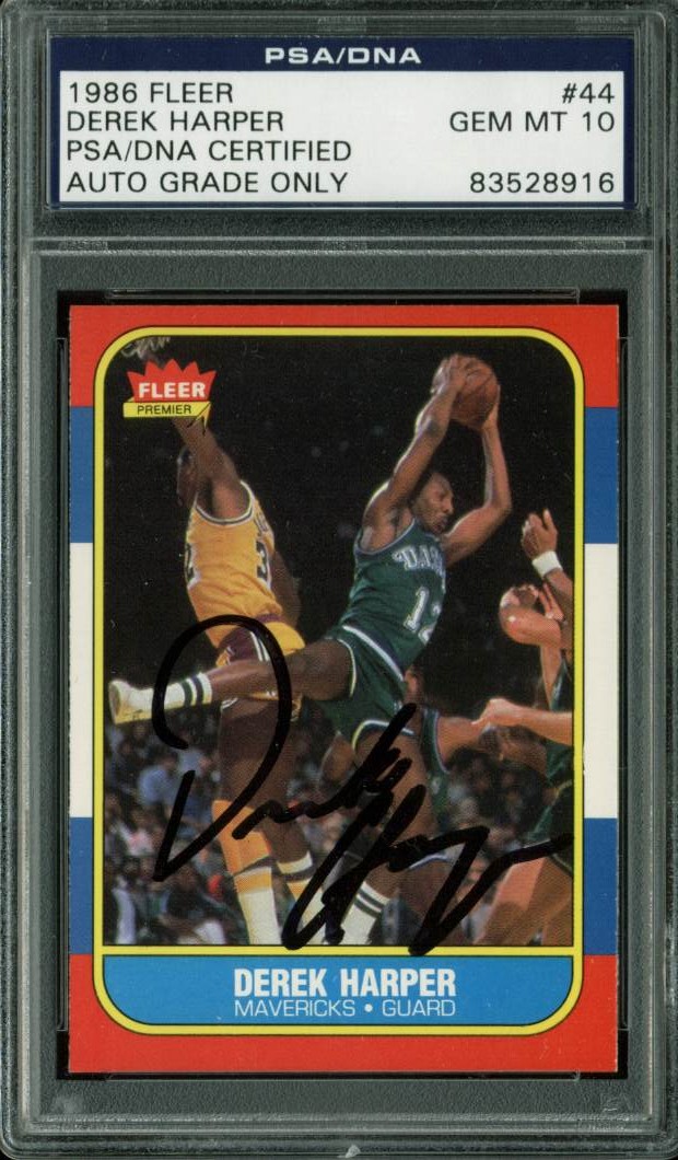 Mavs Derek Harper Signed Card 1986 Fleer #44 Auto Graded Gem Mint 10 PSA Slabbed