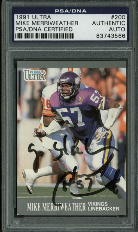 Vikings Mike Merriweather Authentic Signed Card 1991 Ultra #200 PSA/DNA Slabbed