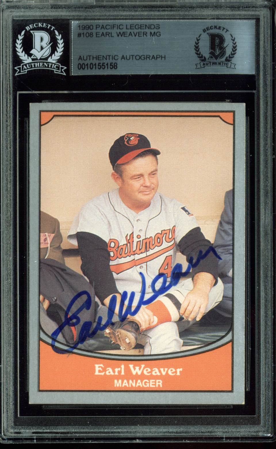Orioles Earl Weaver Authentic Signed Card 1990 Pacific Legends #108 BAS Slabbed