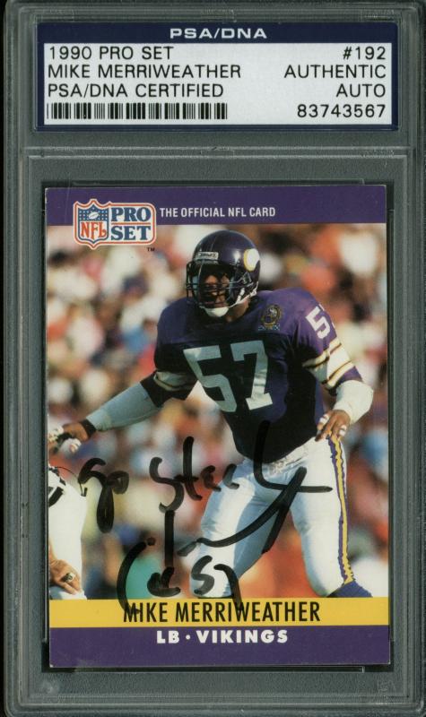 Vikings Mike Merriweather Authentic Signed Card 1990 Pro Set #192 PSA Slabbed