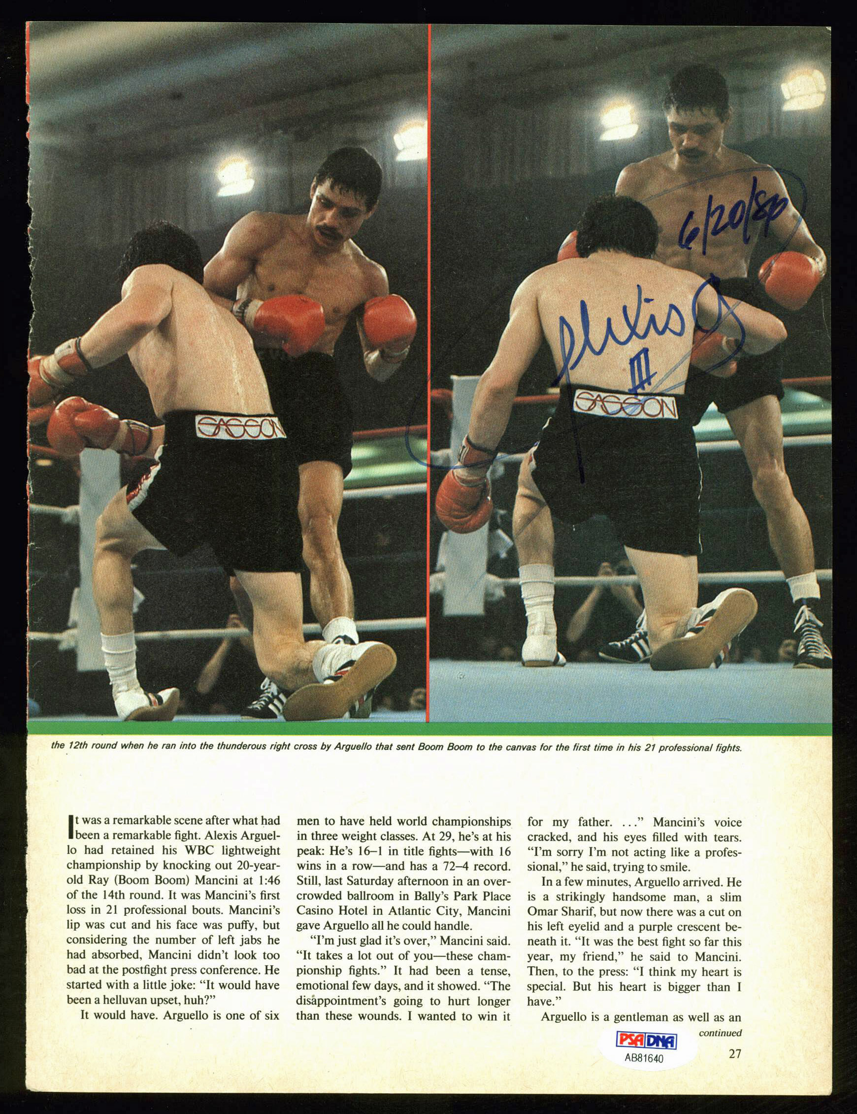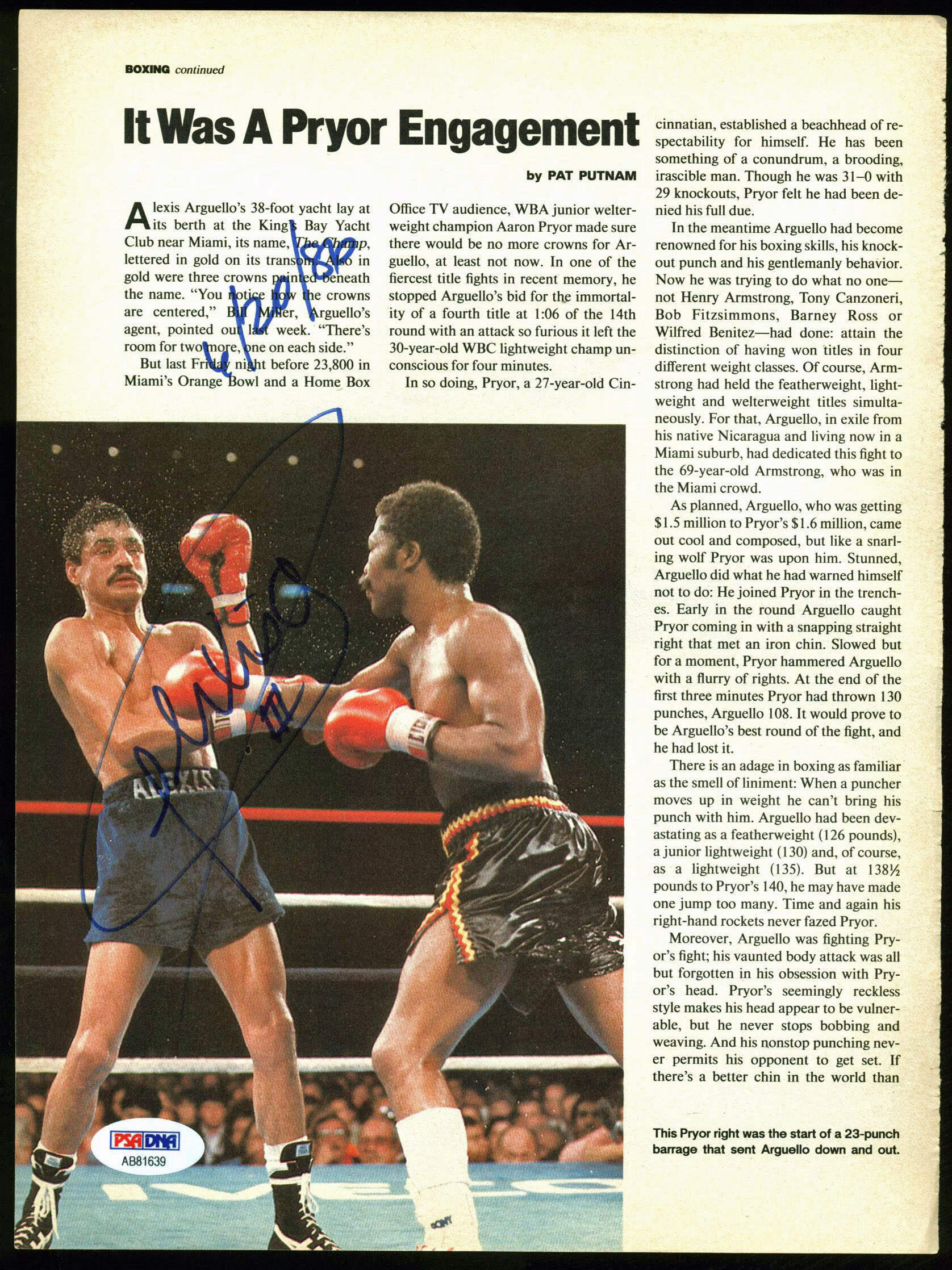 Alexis Arguello Authentic Signed Boxing Magazine Page Photo PSA/DNA #AB81639