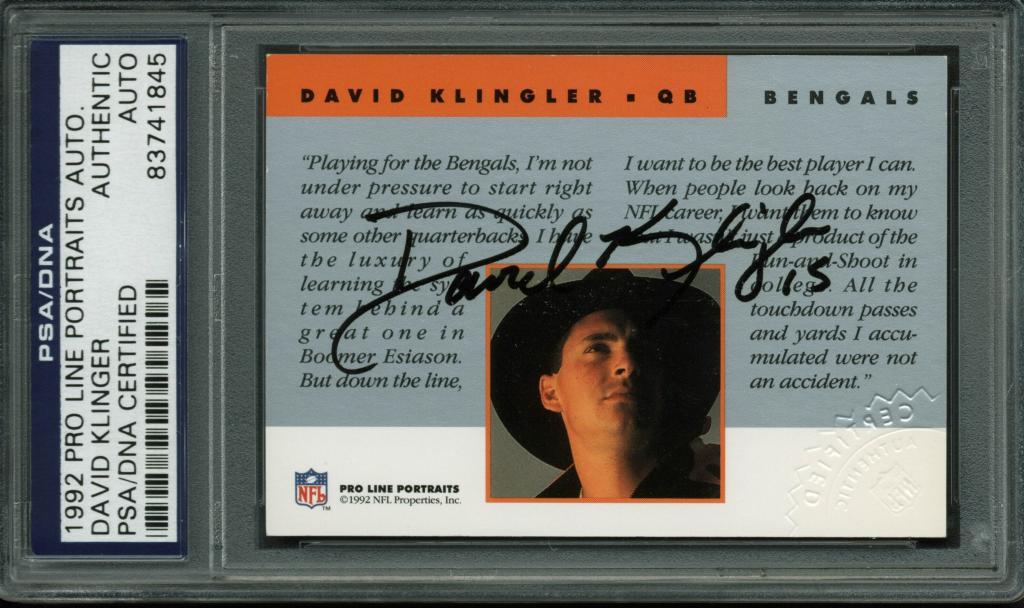 Bengals David Klinger Signed Card 1992 Pro Line Portraits Auto PSA/DNA Slabbed