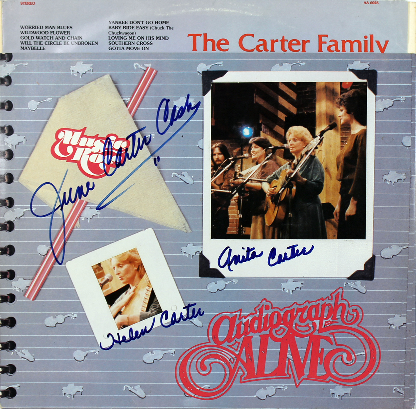 The Carter Family (3) June C. Cash, Helen & Anita Signed Album Cover W Vinyl BAS