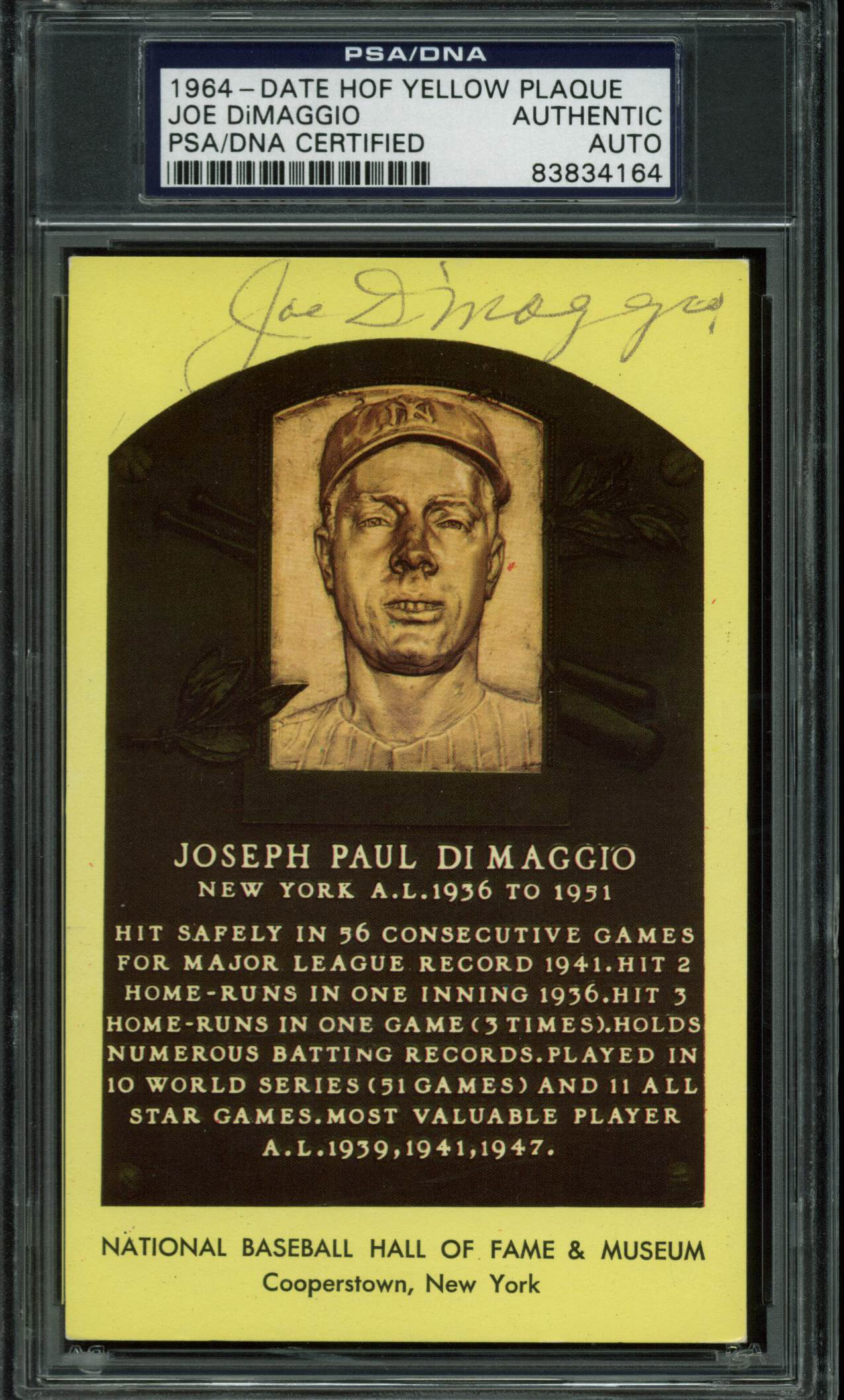 Yankees Joe DiMaggio Authentic Signed HOF Plaque Postcard PSA/DNA Slabbed