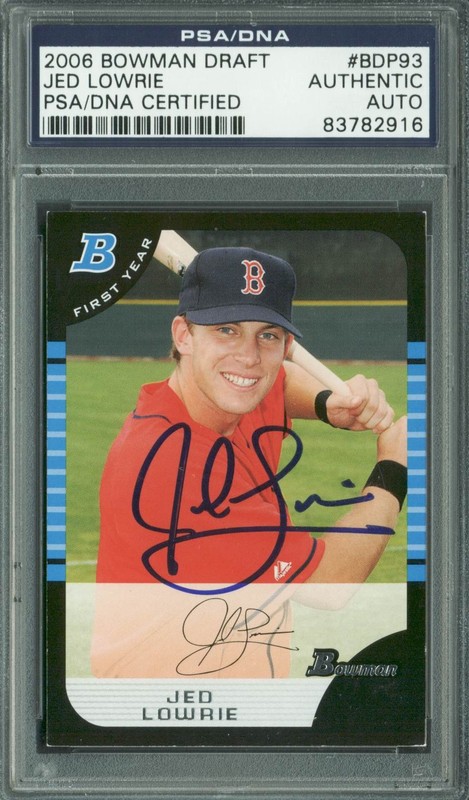 Red Sox Jed Lowrie Authentic Signed Card 2006 Bowman Draft RC #BDP93 PSA Slabbed