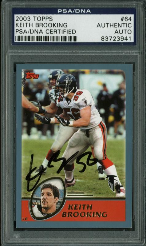 Falcons Keith Brooking Authentic Signed Card 2003 Topps #64 PSA/DNA Slabbed