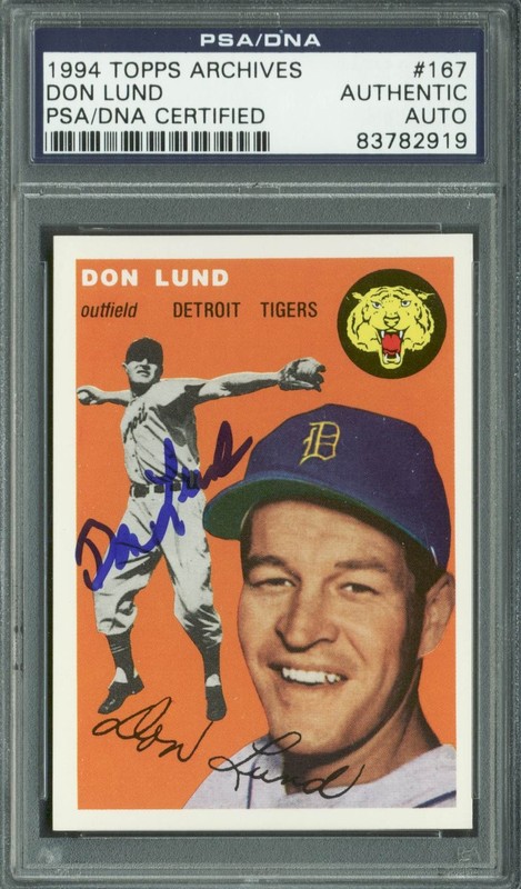 Tigers Don Lund Authentic Signed Card 1994 Topps Archives #167 PSA/DNA Slabbed