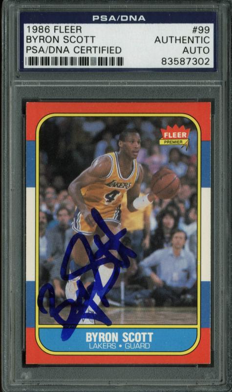 Lakers Byron Scott Authentic Signed Card 1986 Fleer #99 PSA/DNA Slabbed