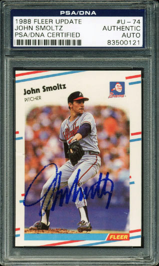 Braves John Smoltz Authentic Signed Card 1988 Fleer Update Rc #U-74 PSA Slabbed