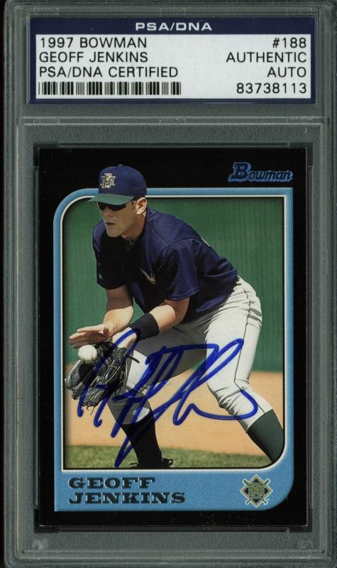 Brewers Geoff Jenkins Authentic Signed Card 1997 Bowman #188 PSA/DNA Slabbed