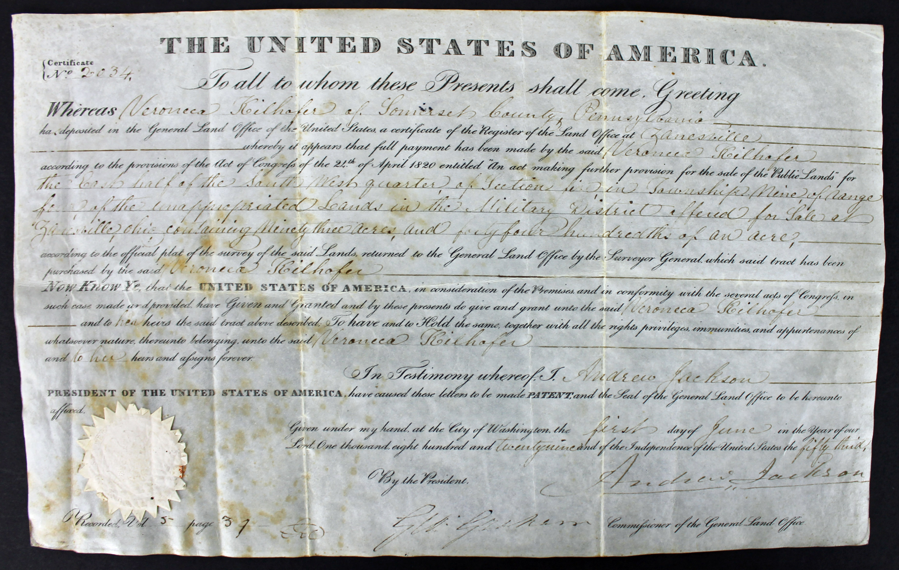 Andrew Jackson Authentic Signed 10x15.75 1829 Land Grant Document PSA #AA08331