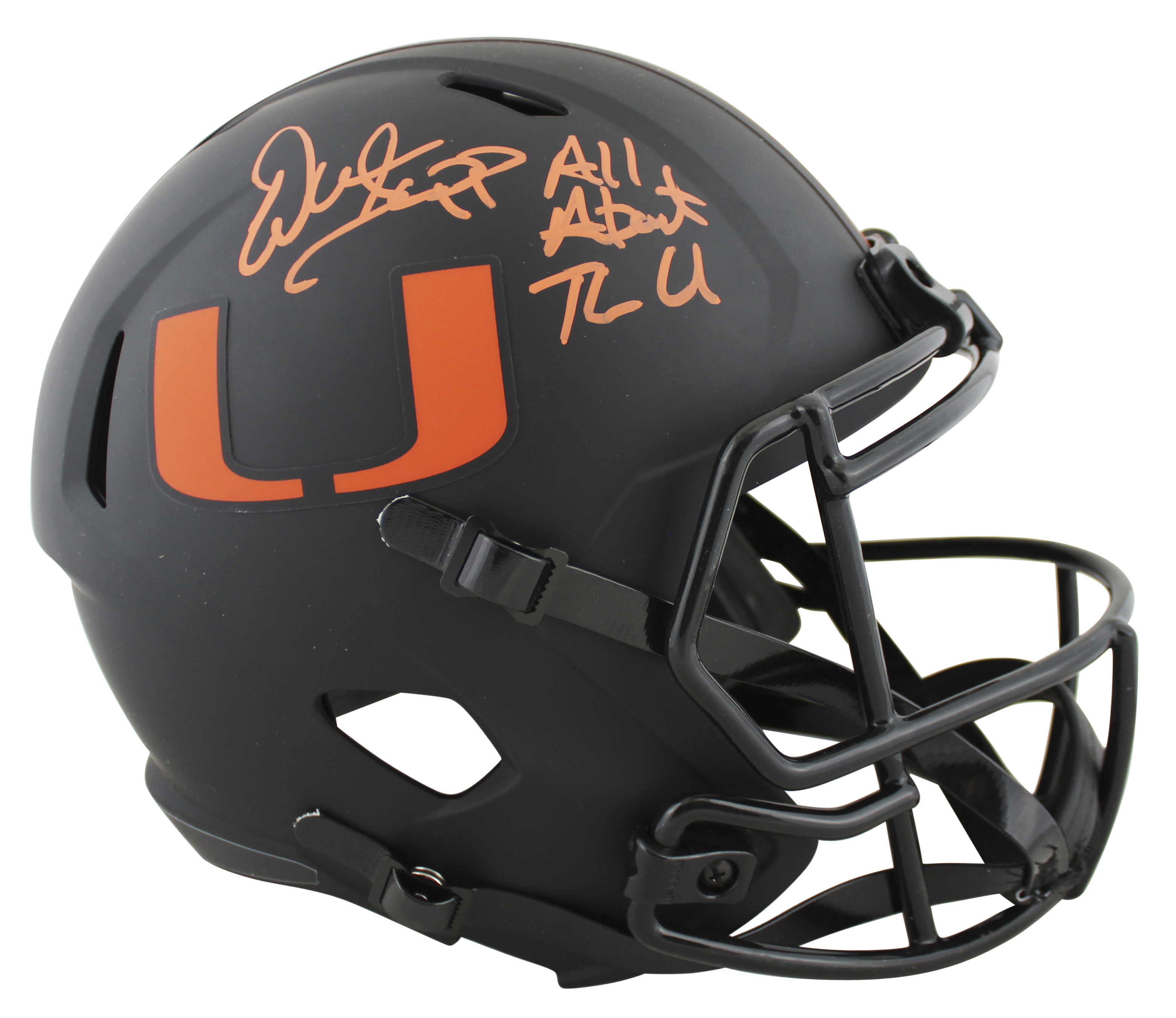 Miami Warren Sapp "The U" Signed 2017 Nights Alt Black Speed Mini Helmet BAS Wit