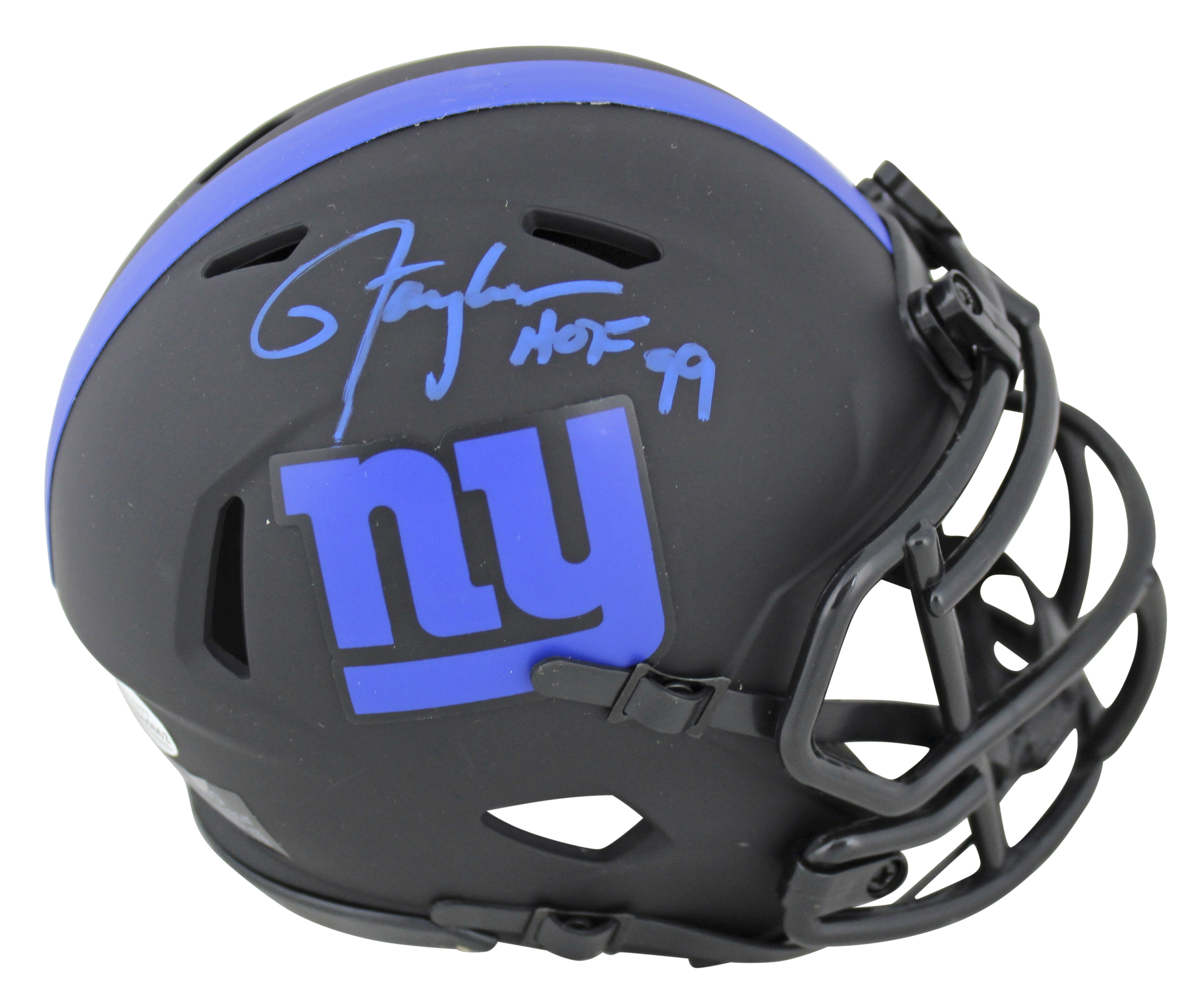 Giants Lawrence Taylor "HOF 99" Signed Eclipse Speed Mini Helmet BAS Witnessed