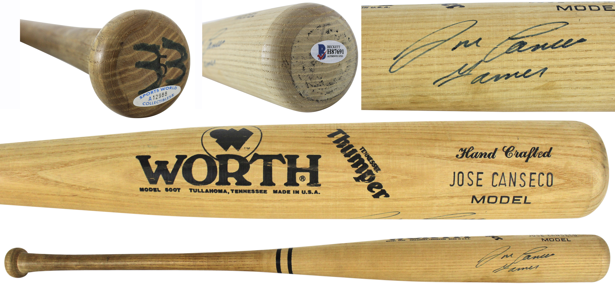 Athletics Jose Canseco "Gamer" Signed Game Used Worth Baseball Bat BAS #H87691