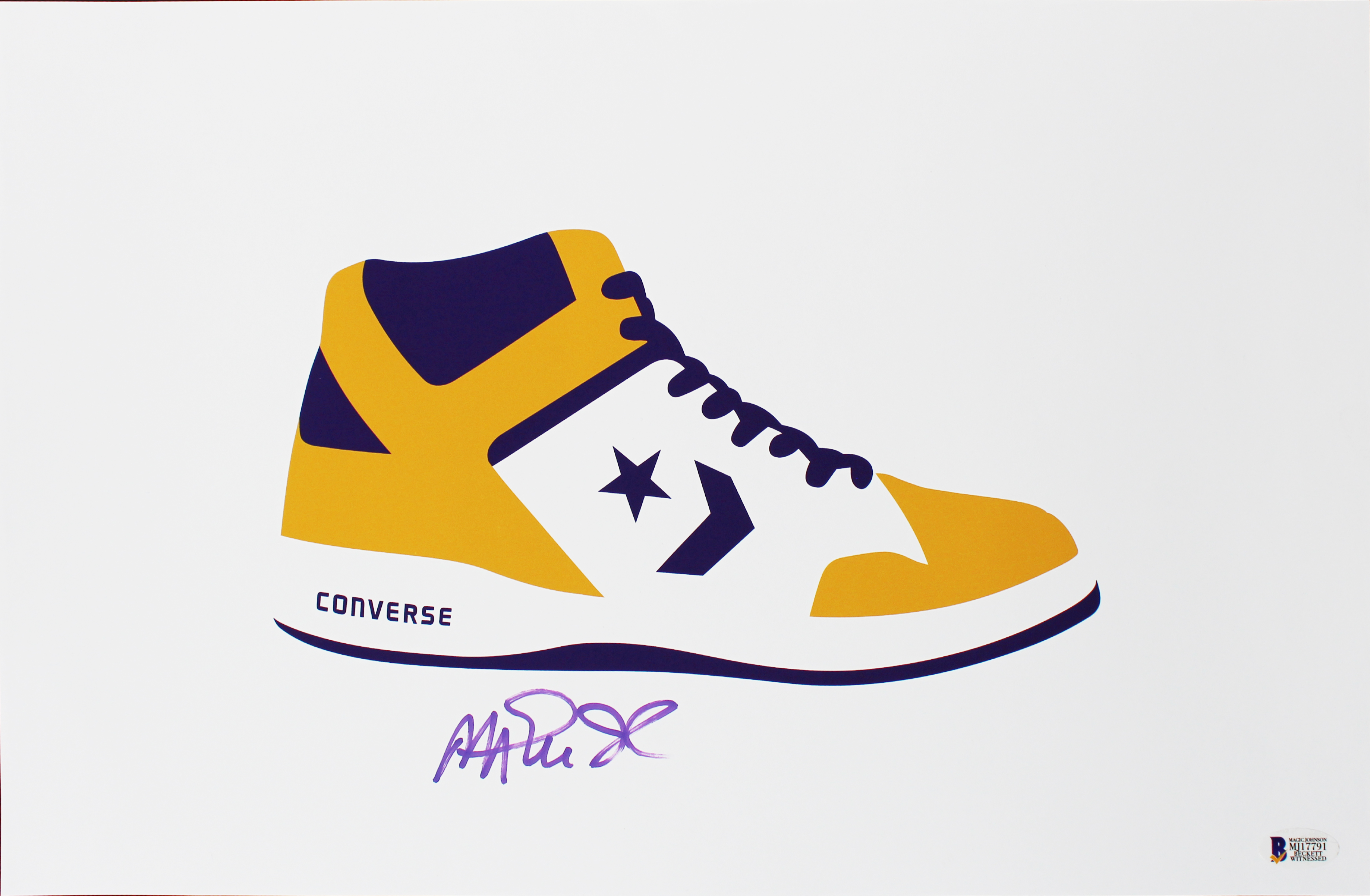 Lakers Magic Johnson Signed 11x17 Converse Weapon Lithograph BAS Wit #MJ17791