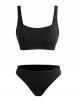 Ribbed Tie Shoulder Piping Bikini Swimwear