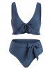 Tied Ruffle Belted Full Coverage Bikini Swimwear