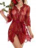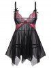 Lace and Mesh Peek A Boo Handkerchief Babydoll Set