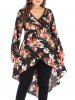 Plus Size Lace Up Bell Sleeve Floral Print T Shirt