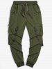 Ribbon Pockets Long Drawstring Sport Cargo Pants