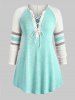 Plus Size Lace Up Heathered Striped V Neck Tee