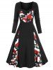 Buttoned Bowknot Plaid Santa Hats Snowflake Christmas Plus Size Dress