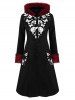 Plus Size Hooded Faux Fur Floral Butterfly Print Long Coat