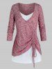 Plus Size Space Dye Plunge Cinched T shirt and Cami Top Set