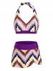 Halter Chevron Pattern Skirtini Bikini Swimwear