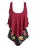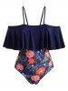 Floral Strappy Overlay Flounces Plus Size One piece Swimsuit