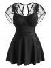 Plus Size Mesh See Thru Surplice Applique Skirted Tankini Swimwear