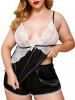 Plus Size Bowknot See Thru Cami Lingerie Dress with Flounce