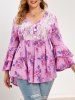 Plus Size Flower Lace Panel Layered Flare Sleeve Blouse