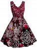 Scalloped Collar Snowflake Print Christmas Plus Size Dress