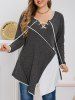 Plus Size Contrast Color Lace Up Asymmetric Knitted T shirt