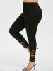 Plus Size Lace Insert Mock Button Skinny Leggings