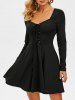 Lace Up Mock Button Hooded Asymmetrical Dress