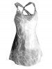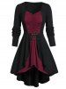 Plus Size Contrast Tunic Lace Up Sweetheart Collar T Shirt
